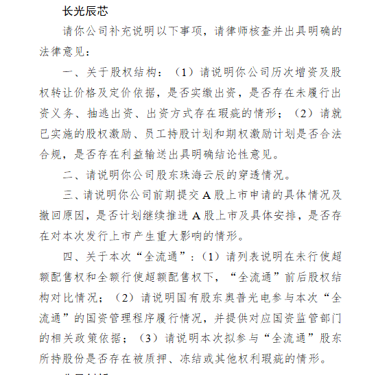 近日,长光辰芯收到证监会关于本次境外上市的备案反馈意见,具体反馈如下: